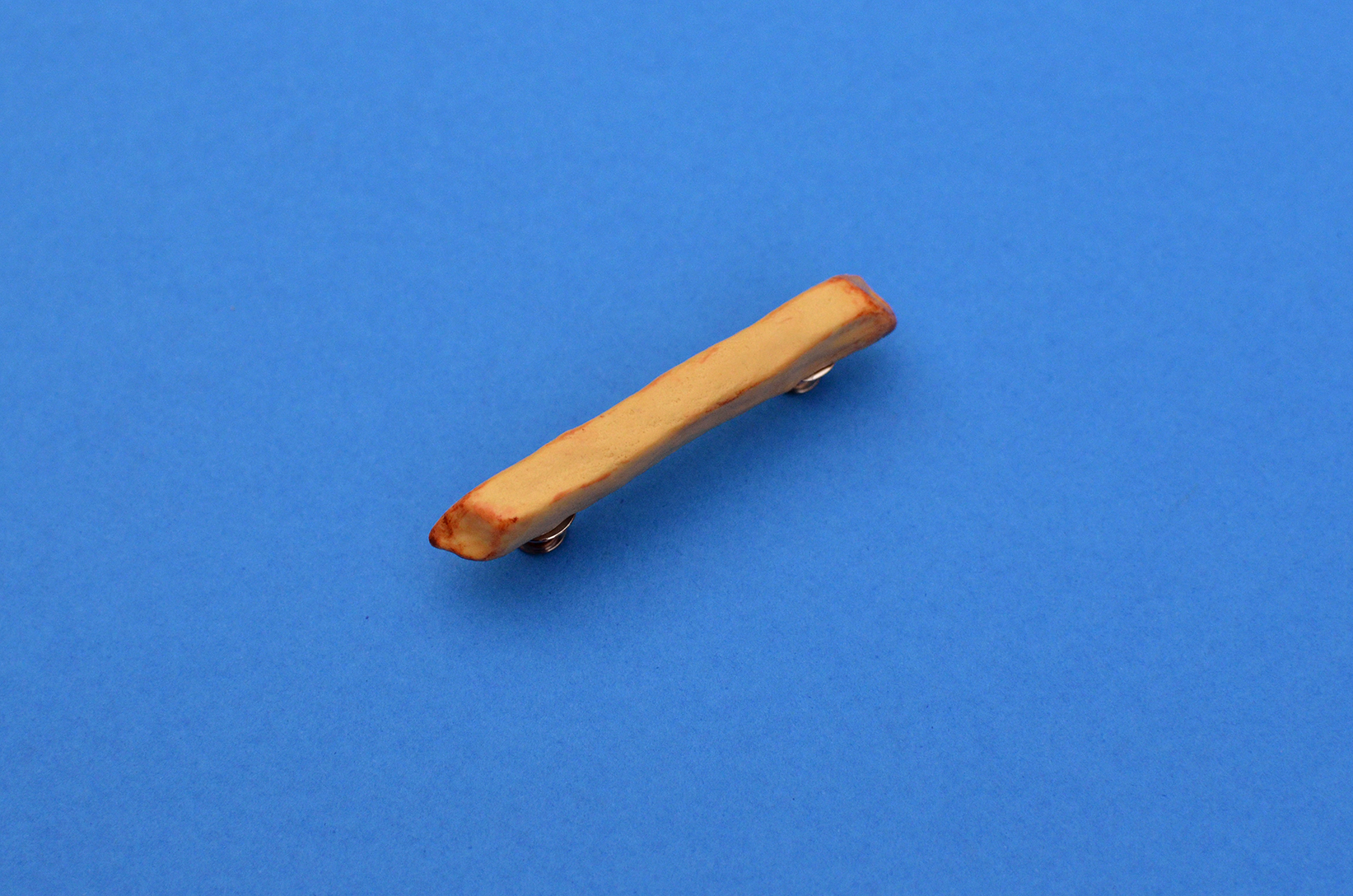 Le pin's est façonné manuellement dans mon atelier. L'élément en porcelaine est cuit à deux reprises (jusqu'à 1240°), et émaillé pour résister aux salissures.
