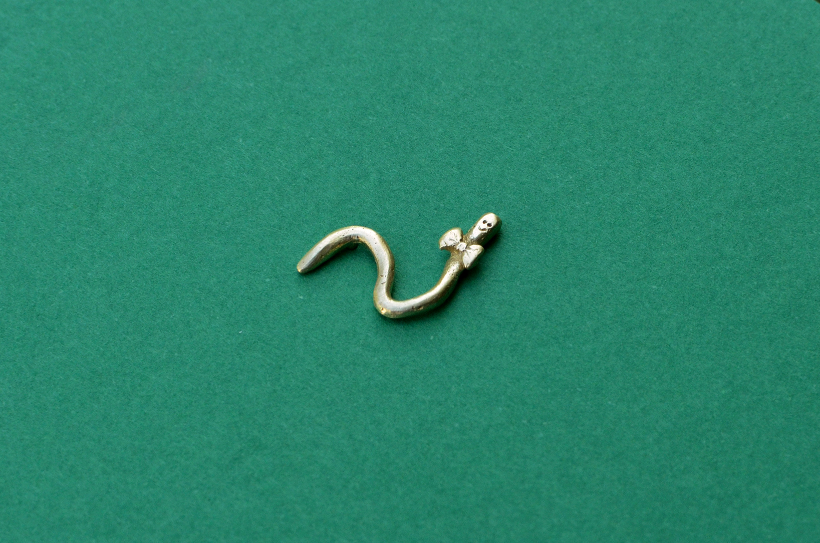 The technique used is the traditional lost wax casting: I sculpt a prototype in a hard wax, then give it to the foundry to get it cast in brass. I finish with cutting off the head and polishing.